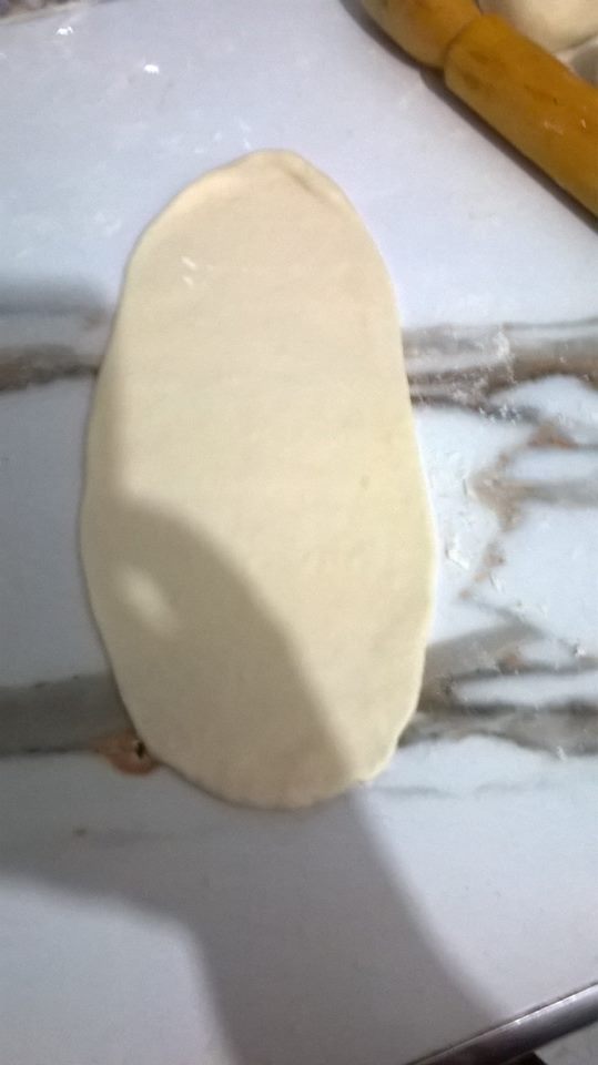 عندما تختمر العجين نضيف لها الدقيق المتبقي و نصف كاس زيت عادي و تدلك جيدا و يكون قوامها مرخوف