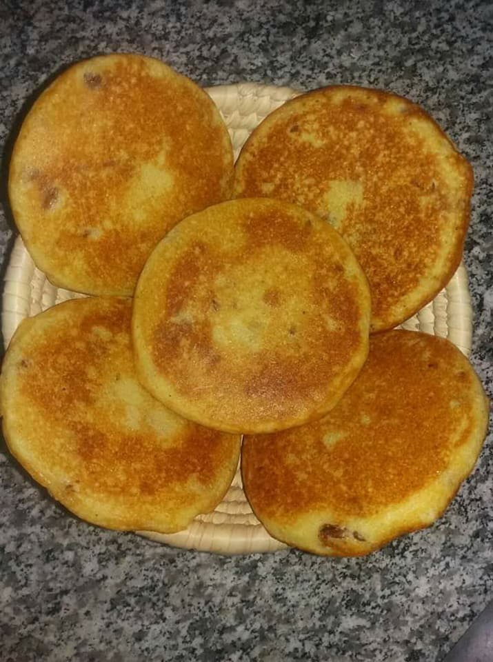و قبل طهيهم نضيف خميرة الخبز مذوبة فالقليل من الماء و خميرة الحلوة و نمزج جيدا و مباشرة نضع المقلاة على النار و يجب ان تكون المقلاة جيدة