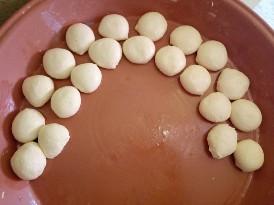 نعجن العجين و تدلك جيدا و نعمل منها كويرات صغيرة تدهن بالزيت و نتركهم يرتاحو