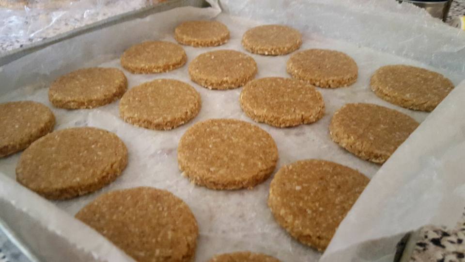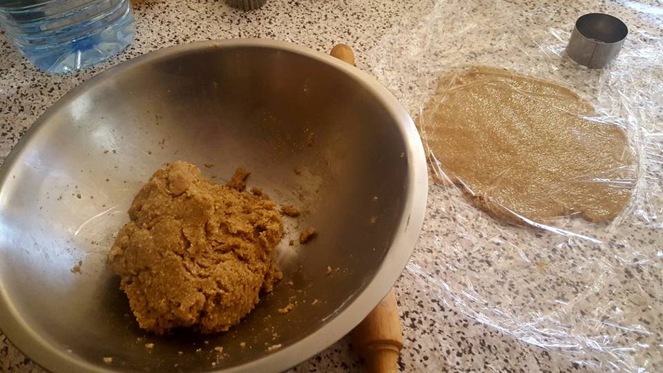 - تبسط العجين بين بلاستيك غذائي و يقطع الى دوائر و لا يجب ان تكون رقيقة