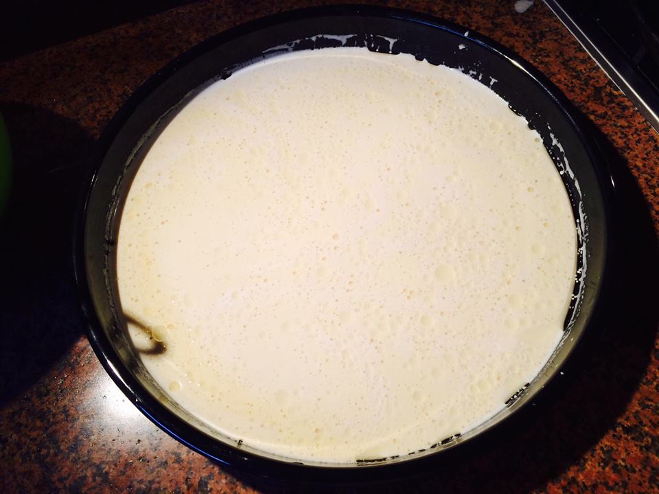 ملاحظة : الخليط يكون سائل كما تبين الصورة و ينشف في الفرن لان الحمص يتشرب