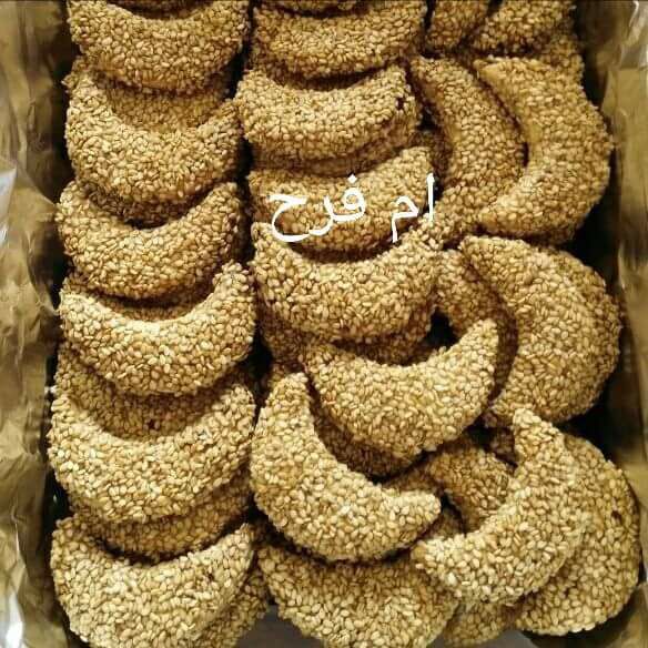 نبسط العجين بالمدلك على سمك متوسط ونقطع قطع على شكل هلال ندهنهم بأبيض البيض ويفند الوجه في الزنجلان جيدا