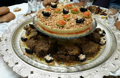 موقع بسمة لكل ما يهم المرأة المغربية يقدم جديد اطباق العزومات و المناسبات المغربية : اللحم مرفق بسفة الكسكس بتقديم راقي