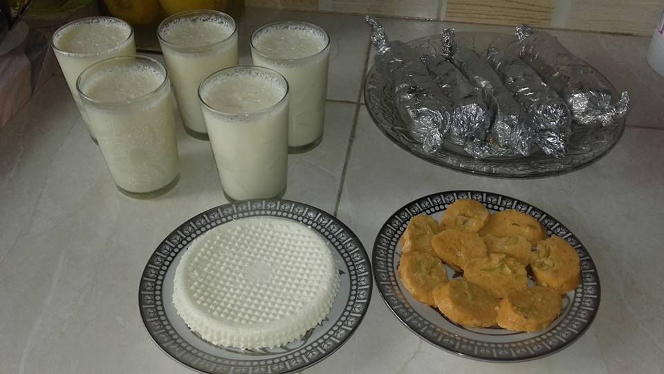 يوضع نصف لتر حليب فوق النار حتى يفيض و يوضع في الخلاط الكهربائي