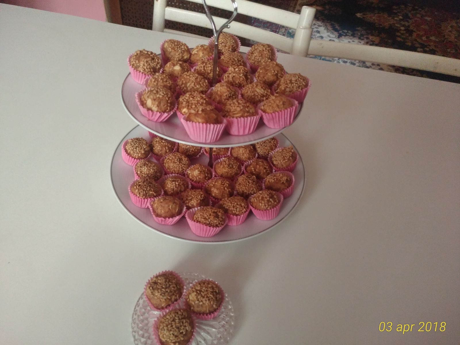 نجمع كل هذه المكونات و نخلطها بالعسل الطبيعي بعد ان تتجانس نشكل منها كويرات صغيرة نمررها في السمسم و نضعها داخل ورق الحلويات