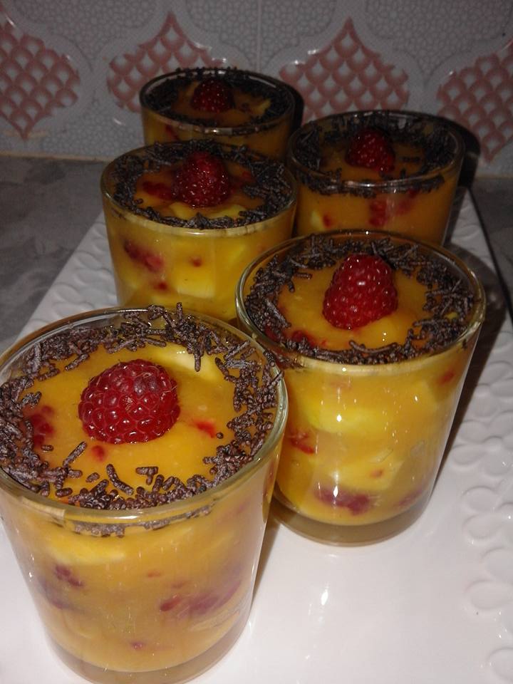يصب الخليط في كؤوس التقديم و يزين حسب الرغبة