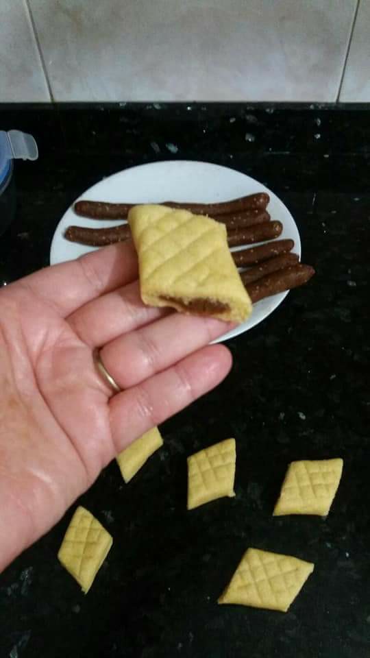 يبسط المقروط قليلا بالمدلك المنقوش و يقطع كما توضح الصورة