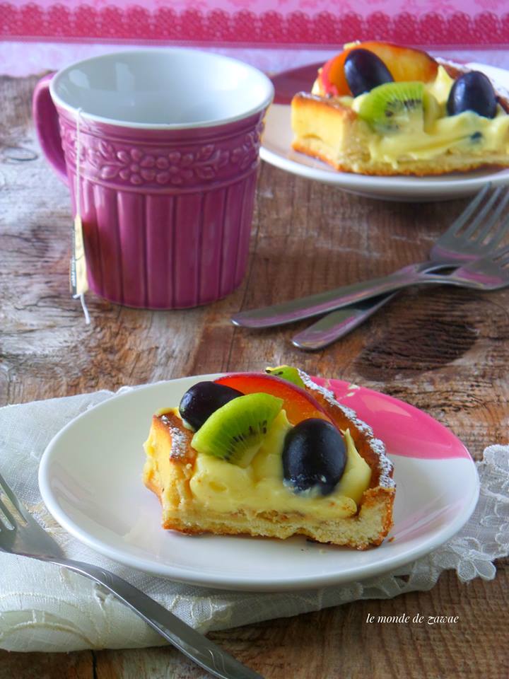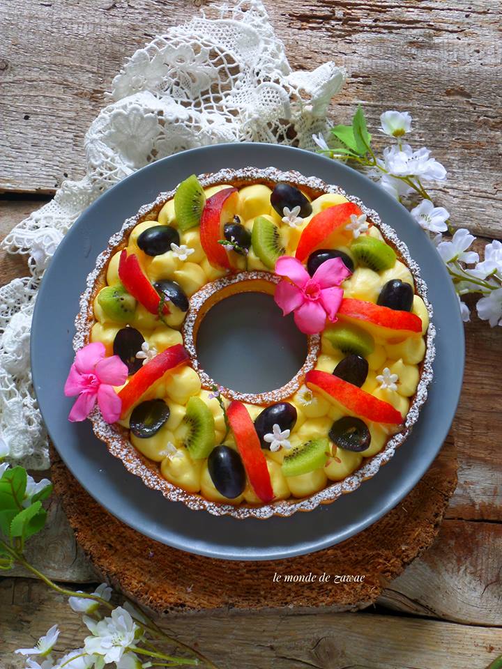 بعدما نخرجها من الرفن نتركها لتبرد ثم نزينها بالكريمة ثم الفواكه