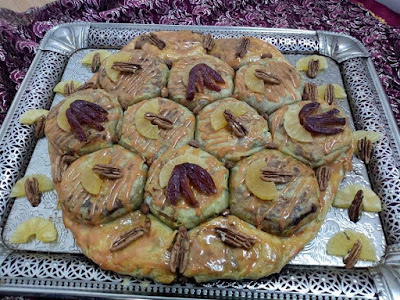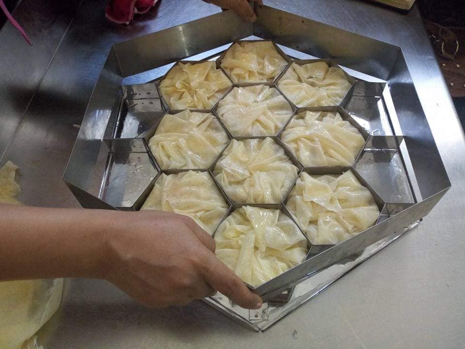 هذه صورة قالب الشهدة نضع فوقه اوراق البسطيلة كما هو موظح في الصور