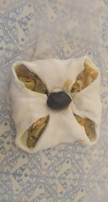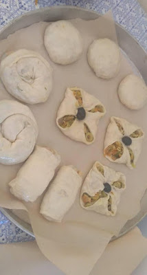 نترك الحشوة تبرد و نقسم العجين لكويرات نورقهم بالزبدة ذايبة مخلطة مع الزيت او نشكلهم كيف ما حبينا انا الأشكال لدرت راهم واضحين فالصور طريقة ديالهم ندخلهم للفران ملي إطيبو شوية نخرجهم او ندهنهم بصفار بيض مخلط مع القليل من الحليب او نزينهم كيفما حبينا او نرجعهم إكملو طيابهم او بالصحة او الراحة كيجيو لداد