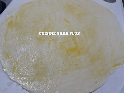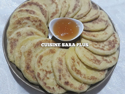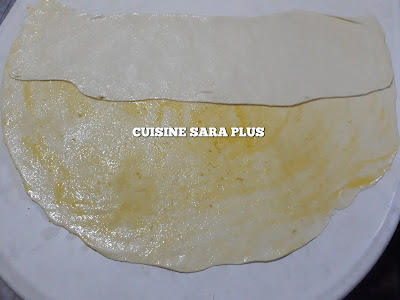 خذي الكرة الاولى بسطيها جيدا فوق طاولة العمل تكون مدهونة بالزيت ، ادهني العجين بالزبدة الدائبة ورشيها بالسميدة ثم تطوى كما هو مبين في الصورة وتقطع تترك ترتاح مرة أخرى يبسط باليد وتطهى من الجهتين في المقلاة تقدم مصحوبة بالعسل وبالهنا
