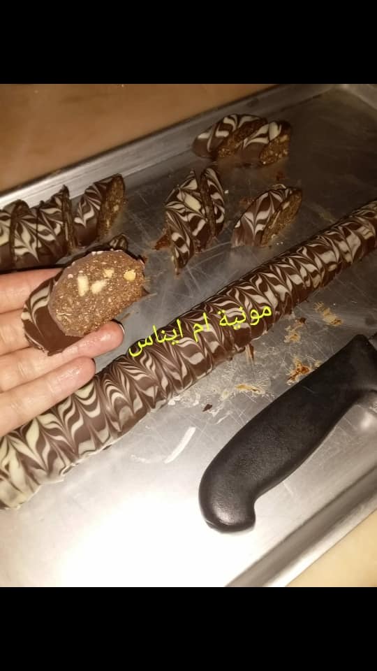 نشكل من الخليط عصيات و نلفهم بالبلاستيك الغدائي و ندخلهم للثلاجة