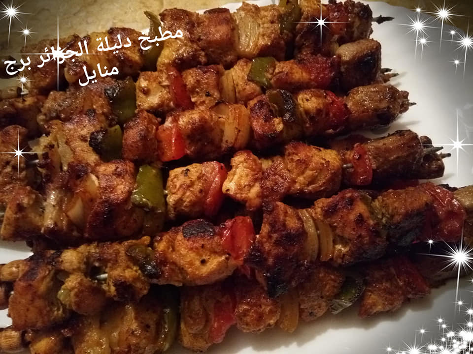 نتبل دجاج و نتركه يتشرب على الاقل ساعتين ثم نخرج الدجاج من الثلاجة ثم ندخلها في عيدان الشوي. وضع قطع الطماطم، و البصل، و الفلفل الأخضر بين قطع الدجاج ، نضع القطبان فوق الشواية مع تقليب عيدان الشوي بين الحين والأخر إلى أن تنضج