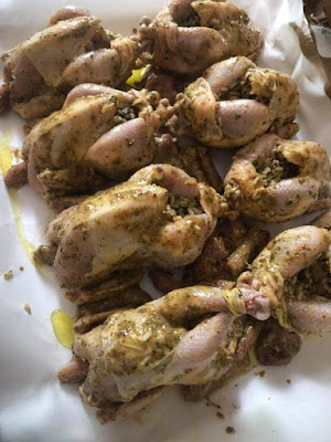 بالنسبة للدجاج مرقد ف ثومة غبرة ملح ابزار سكنجبير و الأعشاب المنسمة و الموطارد زيت الزيتون و القليل من الماء نخليوه مرقد زوج سوايا