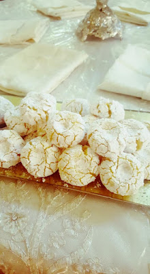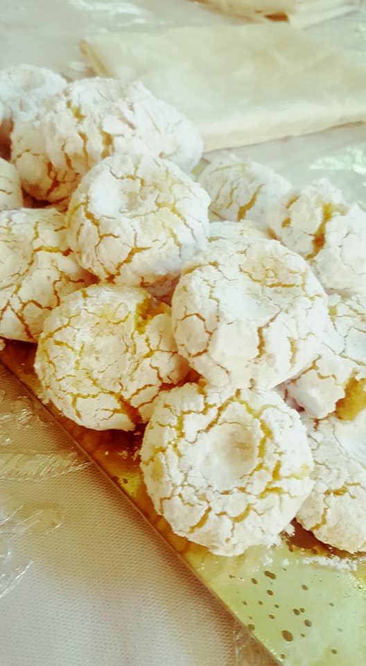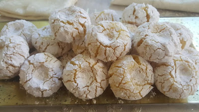 كنخلطو البيض و السنيدة و الزيت و قشور الحامض مزيان و نزيدو المكونات الأخرى و نجمعوها مزيان.ندهنوا صبيعاتنا بماء الزهر نشكلو كويرات 25g في كل حبة نفندوها في سكار كلاصي ممتاز ندخلوها الفرن سخون 10 دقائق كتكون طابت
