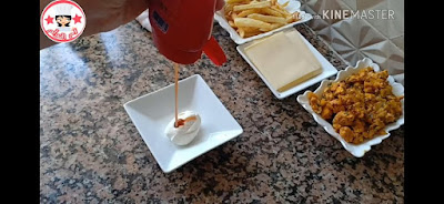 يطهى صدر الديك الرومي مع المكونات المذكورة ما عدا البطاطس المقلية و الجبن