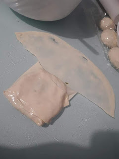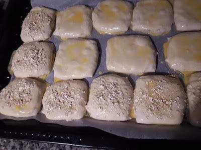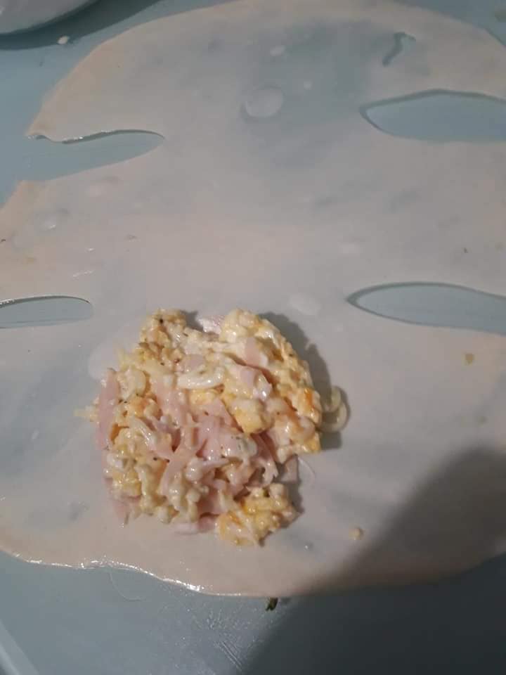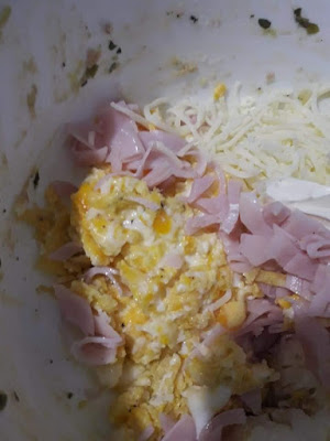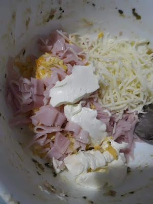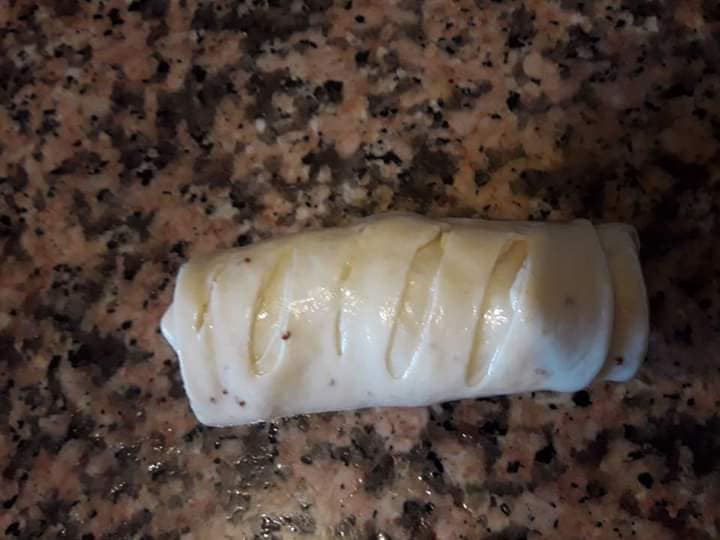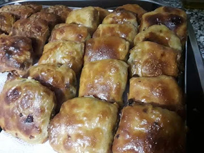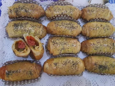 في جبانة ندير خليط البيض ونصف علبة جبن ابيض و 100غ من جامبون فومي و 100غ من جبن بارموزان أو جبن احمر و شوية سودانية و نخلط الكل و نعمر بهم الرغيفات ندهن باصفر البيض و إلى الفرن وبالصحة والراحة