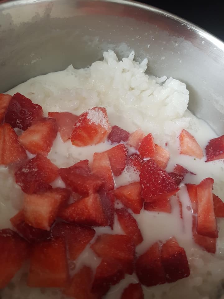 منوعات تحلية الارز اللذيذة Add Comment حلى الارز و الفراولة يطهى الارز مع القليل من الملح تم يضاف اليه الحليب+ قطع الفراولة+ السكر حسب الرغبة + فانيلا بعد ان ينضج الكل يترك ليبرد في الثلاجة تم يضاف اليه الياغورت بنكهة الفراولة و بالصحة و الراحة