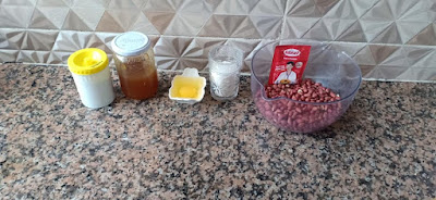 نطحن الكاوكاو المحمر و نخلطه مع المكونات الاخرى