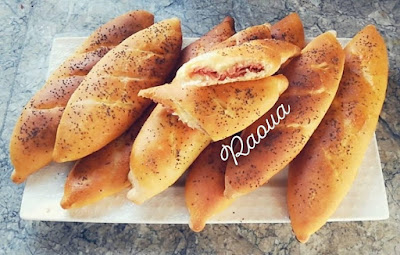 نشكل كريات متساوية الحجم و نسرح الكرة الأولى ونضع فروماج مقطع و الكاشير مبشور و نجمعها و نشكلها مثل الباكيط  ندهنهم بصفار بيضة مخلطة مع 2 م ك حليب و زينتهم بالخشخاش (pavon) وعملت خطوط بالسكين و إلى الفرن و بالصحة والراحة 😊