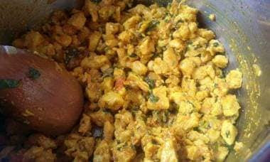 بعد عجن العجين نتركها ترتاح 20 دقيقة ثم نقسمها كويرات. من بعد نبسطها رقيقة و نملأها بالحشوة : أنا عملت دجاج والبصل و معدنوس و قزبر و التوابل كل سيدة ولي متوفر عندها ،
