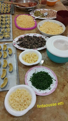 نخلط الطحين مع الخمارة و الملح البزار و نزيد الزبدة و نبسبسهم مزيان باش دخل زبدة في طحين و من بعد نخلط صفر البيضة مع الماء و نزيدهم على الخليط بحيت غير يتجمع العجين ماشي نبقى ندلك صافي نخليه يرتاح في تلاجة على الأقل ساعتين و بالنسبة لي أنا كنخلية ليلة كاملة.