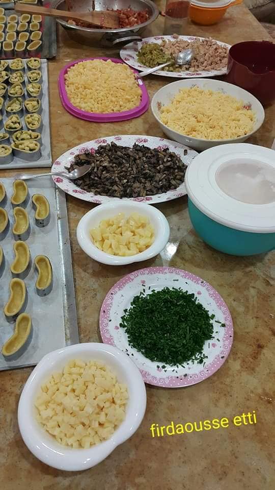 نخلط الطحين مع الخمارة و الملح البزار و نزيد الزبدة و نبسبسهم مزيان باش دخل زبدة في طحين و من بعد نخلط صفر البيضة مع الماء و نزيدهم على الخليط بحيت غير يتجمع العجين ماشي نبقى ندلك صافي نخليه يرتاح في تلاجة على الأقل ساعتين و بالنسبة لي أنا كنخلية ليلة كاملة.