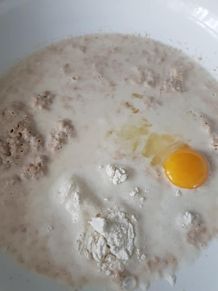 نخلط الخميرة مع القليل من الحليب و نتركها جانبا حتى تتفاعل