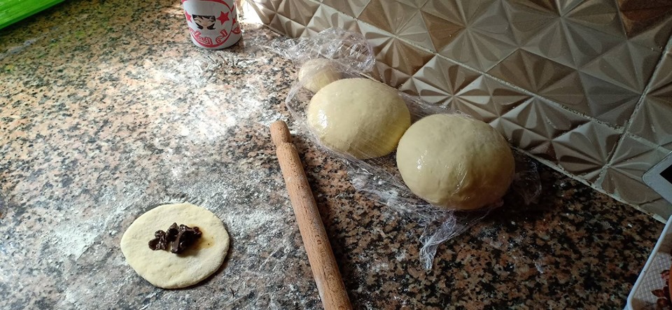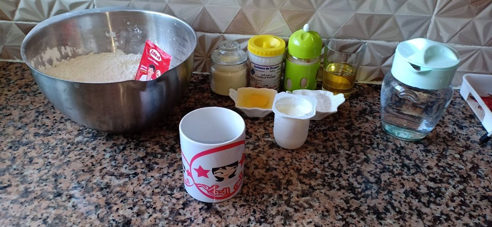 تجمع مكونات العجين وتدلك جيدا و نتركها لتخمر و يتضاعف حجمها جييييدا