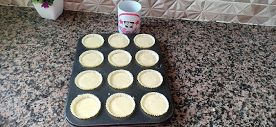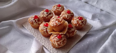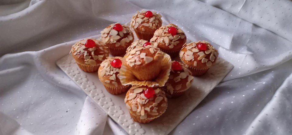 نصبها في قالب الكاب كيك لي درنا فيه الكويغطات ديال الكاب كيك نزين باللوز افيلي و حب الملوك معسل و ندخلها للفرن