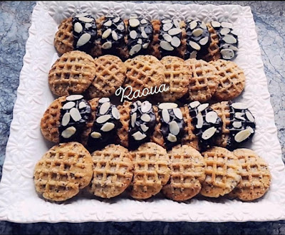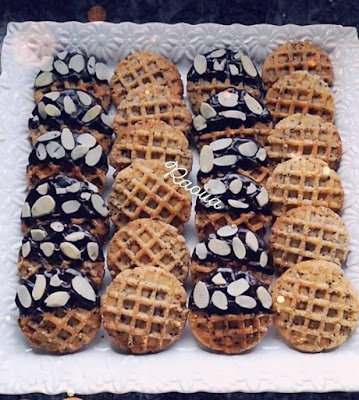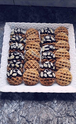 بالنسبة للتزيين : وضعت نصف غريبة في شوكولا سوداء و زينتها باللوز إفيلي و نصف الأخر تركته سليم و بالصحة والراحة 😊