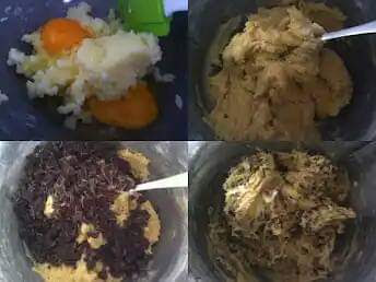 نخلط الزبدة مع السكر جيدا حتى الحصول على خليط كريمي نضيف البيض و الفانيلا و نخلط جيدا ثم نضيف الدقيق و الخميرة شيئا فشيئا و في الاخير نضيف حبيبات الشكلاط