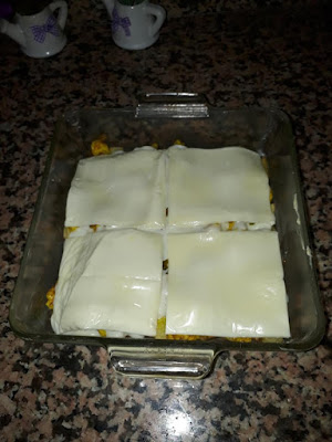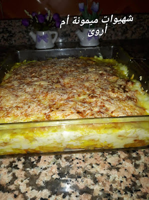 مرة اخرى صلصة البيشاميل ونرش الوجه بالفرماج محكوك وندخل الكراتان للفرن
