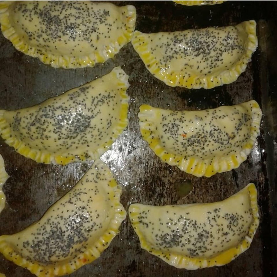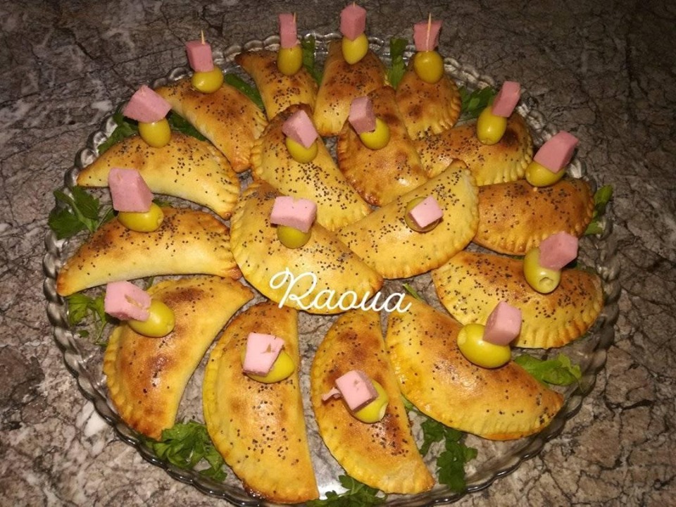 نسرح العجين و نشكل دوائر و كل دائرة نحط في وسطها الحشوة و نغلق الجوانب بالفورشيط و تدهن بصفار بيضة و نزينهم بالخشخاش أو الزنجلان و إلى الفرن يتحمروا من الجهتين و بالصحة والراحة