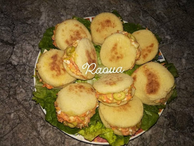 من بعد نقسم العجينة لكرتين و نسرح الكرة الأولى و نشكل دوائر بقطاعة كما في الصور و نتركهم يرتاحوا لمدة 20 دقيقة و يطهو في مقلاة تقيلة