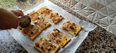 تقطع الفطائر على شكل مستطيل و تقدم بالصحة و الراحة