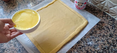بعد ان تبرد الكريمة نضعها فوق عجين الفطائر
