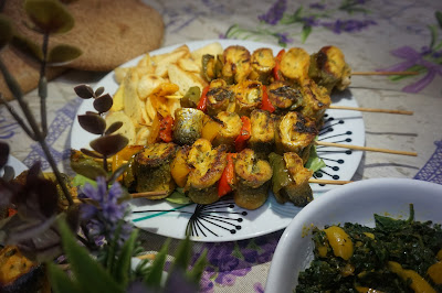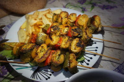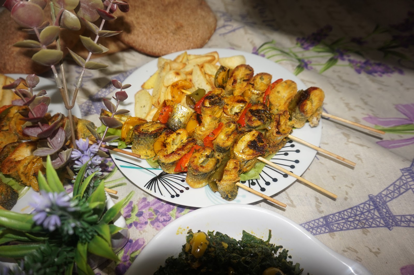 من بعد نلفو السردين و نديروه فاعواد الشواء و بين كل حبة سردين نديرو الفلفل الوان مقطع مربعات