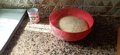 نصفف الكعك في طاوة نغطيه و نتركه لختمر