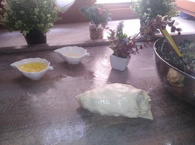 نبسط عجين الملوي و نضع فتحة بالسكين كما في الصورة
