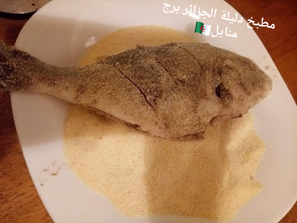 بعدما نقي السمك و نثبله بالفلفل الاسود و الملح و رشة كمون