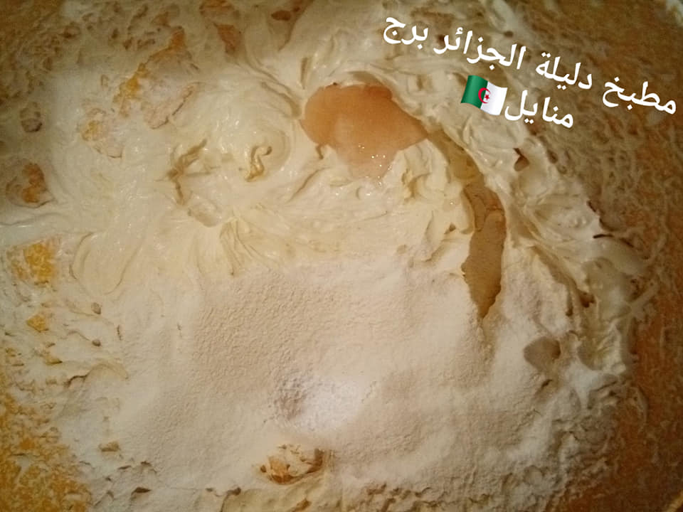 في اناء نخلط الزبدة و السكر و البيض جيدا نضيف الزيت بتدريج ثم نضيف ماء الزهر و الحليب نخلط حتى يصبح القوام كريمي ثم نضيف نشا و الخميرة و نلم بالدقيق حتى نحصل على عجينة طرية
