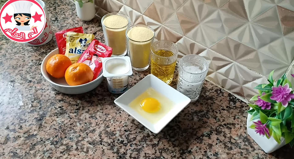 في الخلاط الكهربائي نضع البيضة السكر الزيت ياغورت كيس الزهر المندرين مقطع بقشرته يجب اختيار المندرين ذو القشرة الرقيييقة باش متكونش فيه ديك القشرة البيضاء باش ميجيناش مر