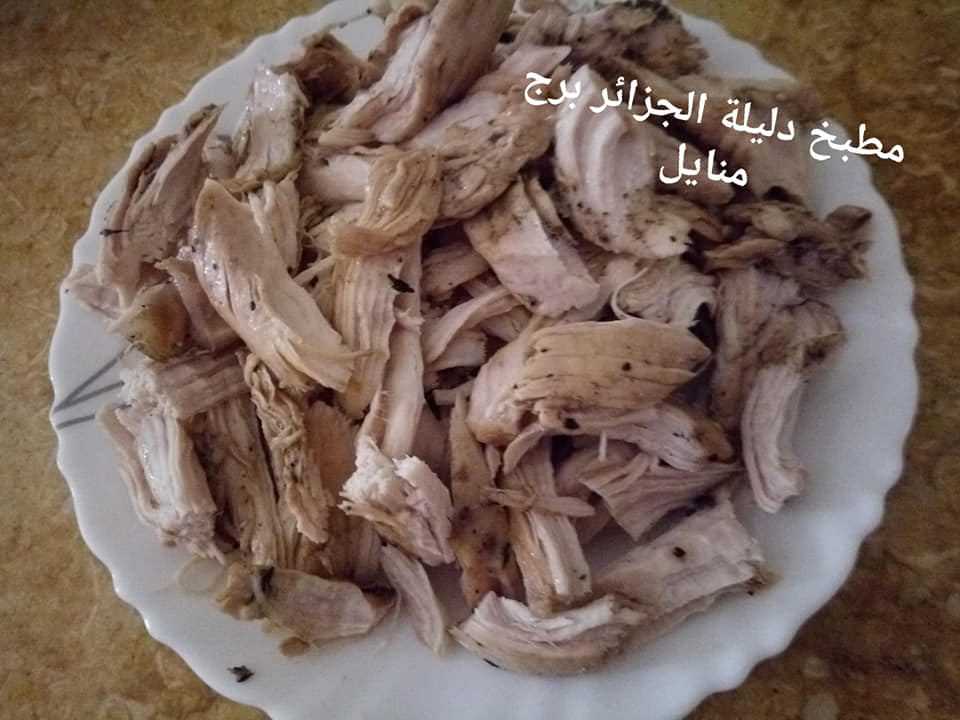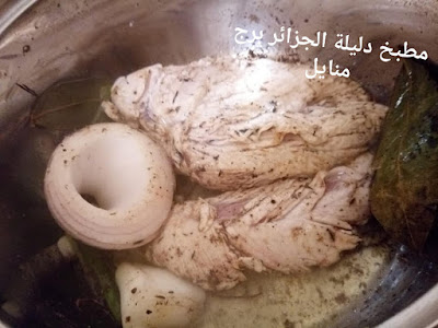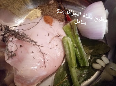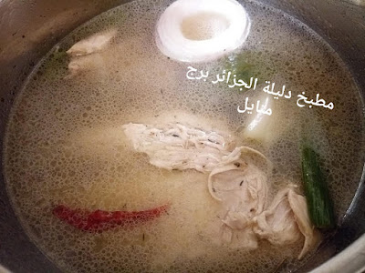 و نمرق لما يطيب دجاج نصفي المرق و الدجاج نفتتو