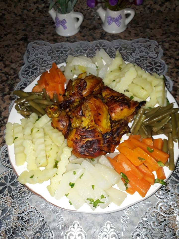 نصلق الخضر في ماء مملح او نبخرها و نقدمها مرفقة بالدجاج