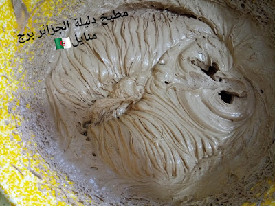 نخفقهم جيدا مدة 3 دقائق حتى تصبح كريمة ثم نضيف الشكولا مع استمرار في الخفق