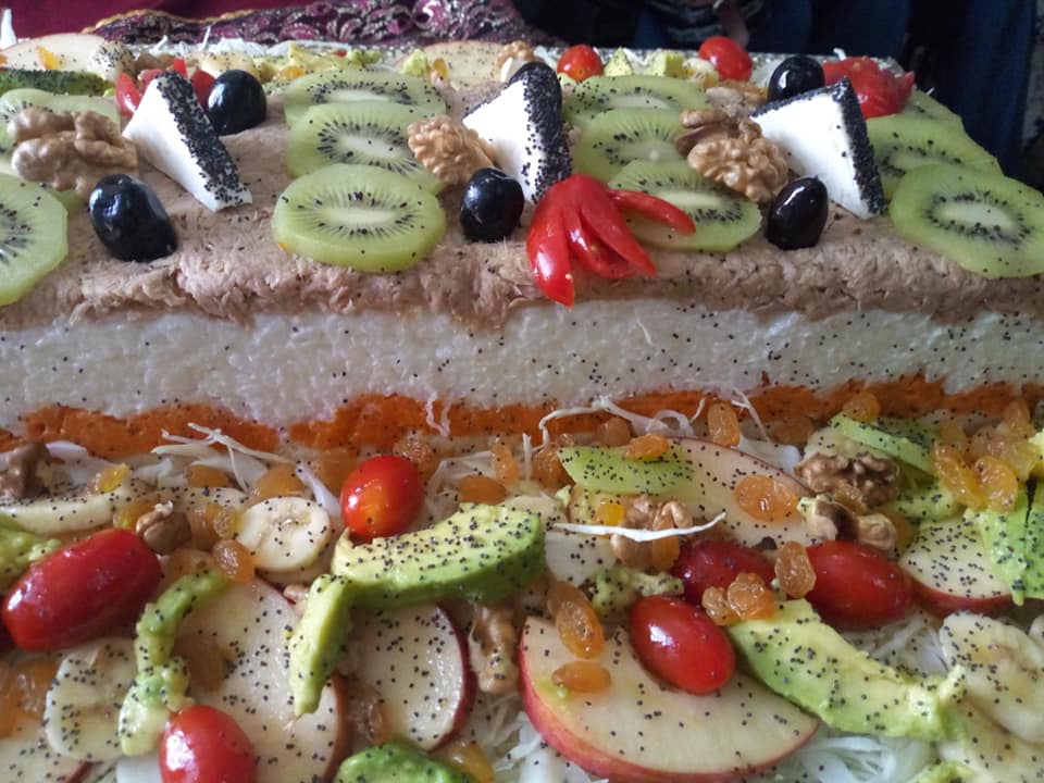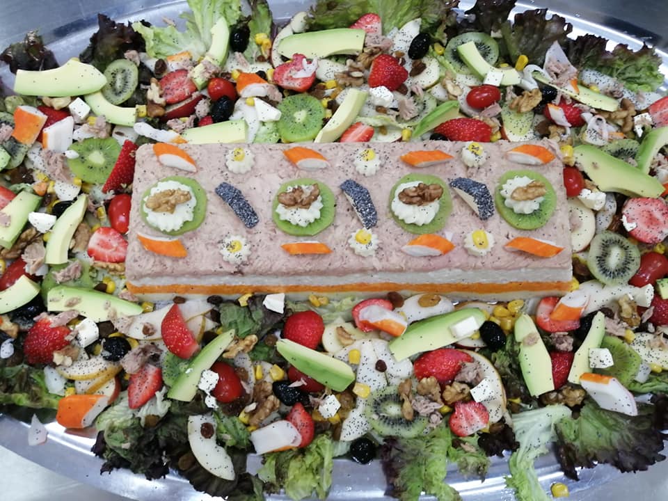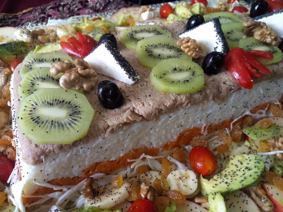 تزين السلطة حسب الاختيار اما بوضع انواع من الفواكه في جوانب الطبق او خضر على حسب الرغبة