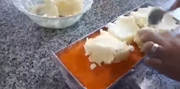 في قاع القالب نضع طبقة من الطون مصفي من الزيت نضغط عليه جيدا ليأخذ شكل القالب