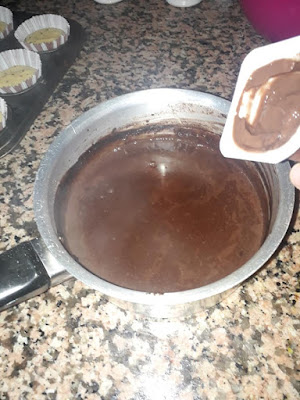 نضيف للكريمة علبة من دانيت شكولا و نخلط جيدا