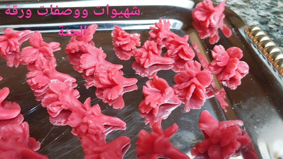 طريقة تشكيل الورود لتزيين حلويات اللوز
